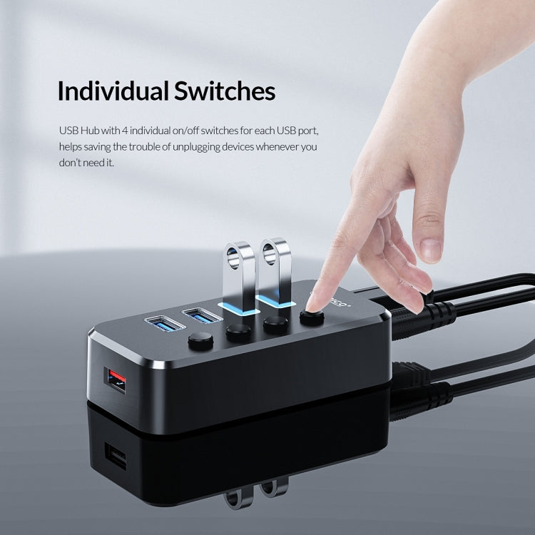 Experience seamless connectivity and efficient device expansion with the ORICO SWU3-4A 4 Ports USB 3.0 HUB in sleek black. This USB hub offers: