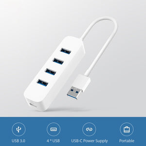 Xiaomi Original 4-Port USB 3.0 Hub with Standby Power Supply and Compact Design - White