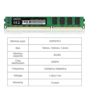 Ensure your computer operates at its best with OSCOO DDR3 Memory. Each package includes a manual, warranty card, and the memory stick itself, all in a compact 133.4x31.3mm size.