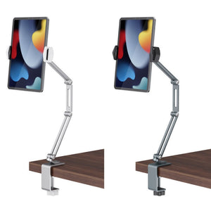 Folding Mobile Phone and Tablet Holder with Adjustable Shaft and Charging Port (Grey)