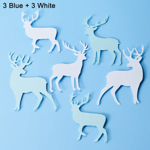 - 30 Pieces/set: 6 blue pine, 6 white pine, 3 blue deer, 3 white deer, 12 snowflakes