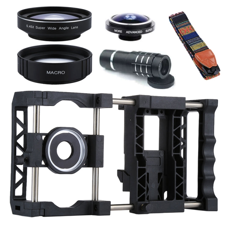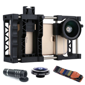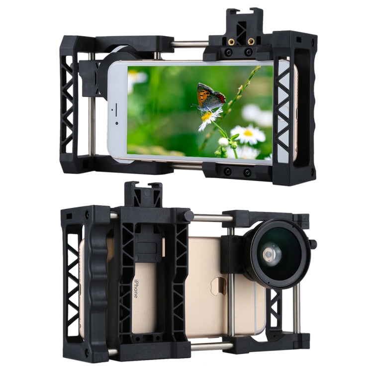 PAPHOTO Universal Adjustable Mobile Phone Cage with Wide-Angle Lens and Complete Lens Kit