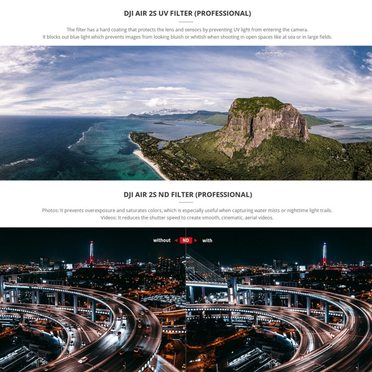 - Improved Visuals: Minimize UV light to reduce haze and enhance contrast in your videos and digital images.