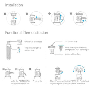 - Adjustable Length: Four-section telescopic pole extends up to 40cm, compact at only 14.5cm when stored