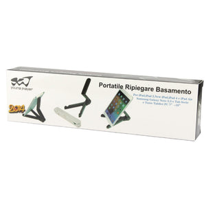 Enjoy hands-free viewing of your iPad, Galaxy, Huawei, Xiaomi, LG, or other 7 to 10-inch tablets with the Piega Portatile Stand. Its automatic stop device allows for easy angle adjustment, while the scratch-resistant silicone and non-slip foam ensure your tablet is protected and secure. The adjustable widths cater to various tablet sizes, and its compact folded size makes it portable and convenient for on-the-go use. Made with durable PC, silicone, and foam materials, this stand is a versatile accessory for your tablet.