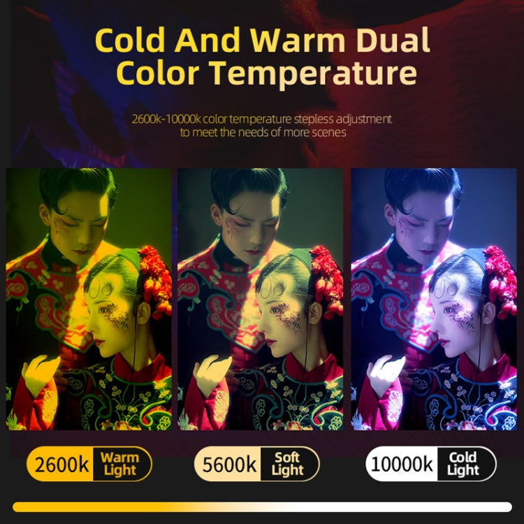- Warm and cold dual color temperature, 2600K-10000K color temperature infinitely adjustable, can meet the needs of more scenes