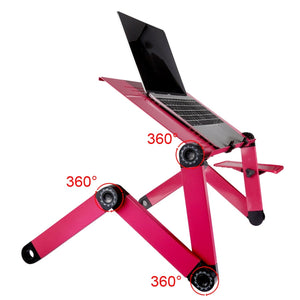 Portable 360 Degree Adjustable Foldable Aluminium Alloy Desk Stand with Mouse Pad for Laptop / Notebook, without CPU Fans (Magenta)