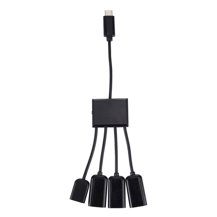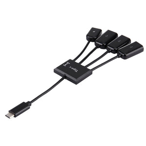 4 in 1 USB-C to 3 Ports USB OTG HUB Cable with Micro USB Power Supply