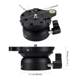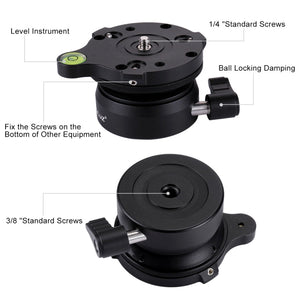 - Universal Compatibility: Designed for DSLR cameras with a 1/4 inch screw and featuring a UNC3/8 inch base thread, this leveling head base is compatible with any tripod, providing versatility and convenience.