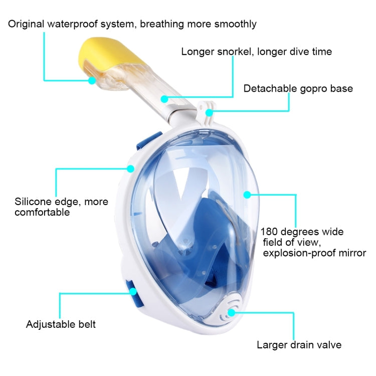 PULUZ 220mm Water Sports Full Dry Snorkel Mask with Action Camera Mount, S/M Size(Blue)