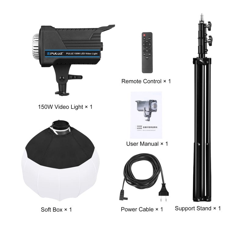 PULUZ 220V 150W 3200K-5600K Studio Video Light Kit with Light Holder and Foldable Lantern Softbox (EU Plug)