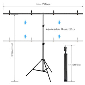 - Adjustable height of the background frame (67-200cm) to suit different shooting needs