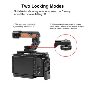 Made from aluminum alloy and rosewood, the PULUZ 3/8 inch Camera Wooden Top Handle with Cold Shoe Mount is a versatile accessory for photographers and videographers.