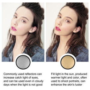 - Enhanced Lighting: The gold surface creates a warm, sunset effect ideal for soft skin tones in portrait photography, while the silver surface enhances light in low-light situations, providing versatility in different lighting conditions.
