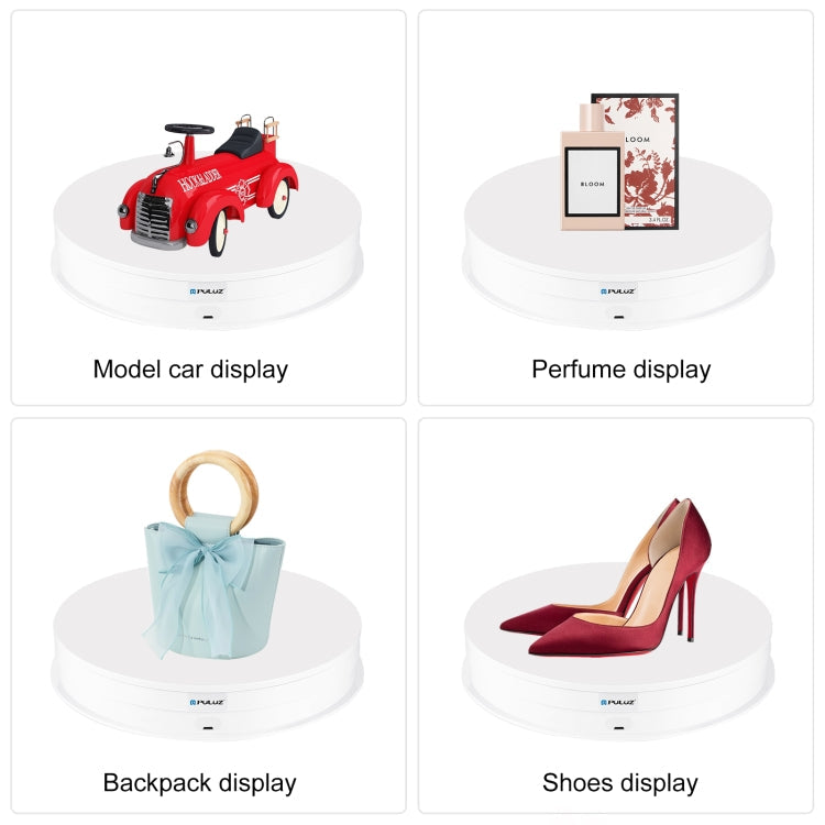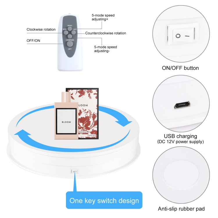 Adjustable Speed Rotating Display Stand with 30cm Diameter, 10-15kg Load Capacity, US Plug (White)