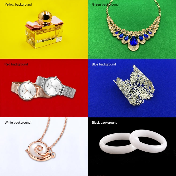 - Color Backdrops x 6 (Black, White, Red, Blue, Yellow, Green)