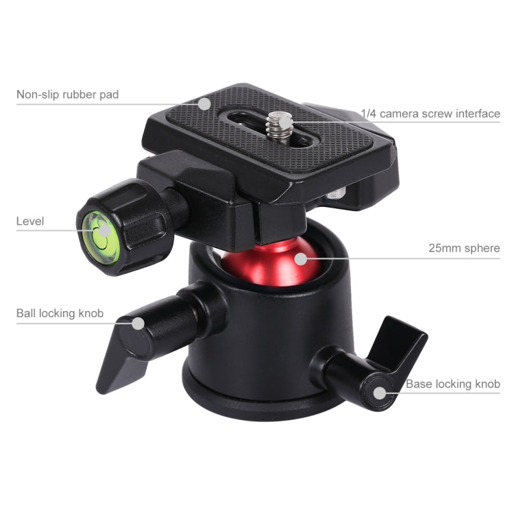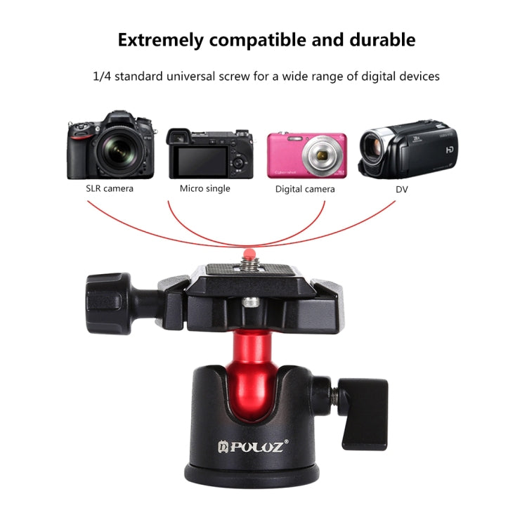 PULUZ 360 Degree Rotation Panoramic Metal Ball Head with Quick Release Plate for DSLR and Digital Cameras in Black