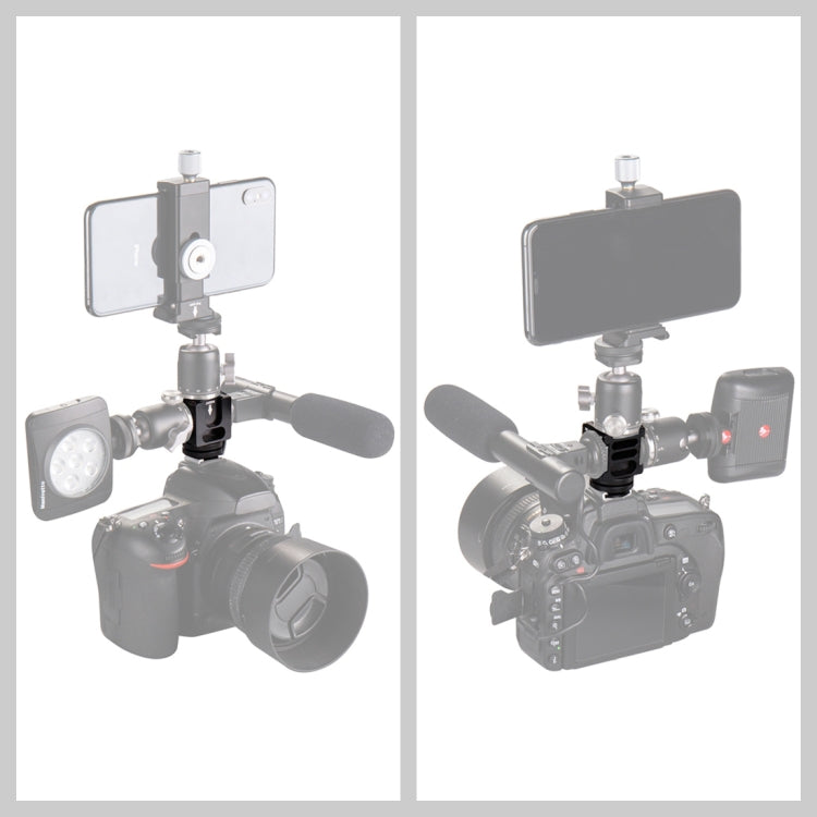 PULUZ 4-Head Hot Shoe Mount Adapter: Versatile Aluminum Alloy Bracket for Microphones and Flashlights