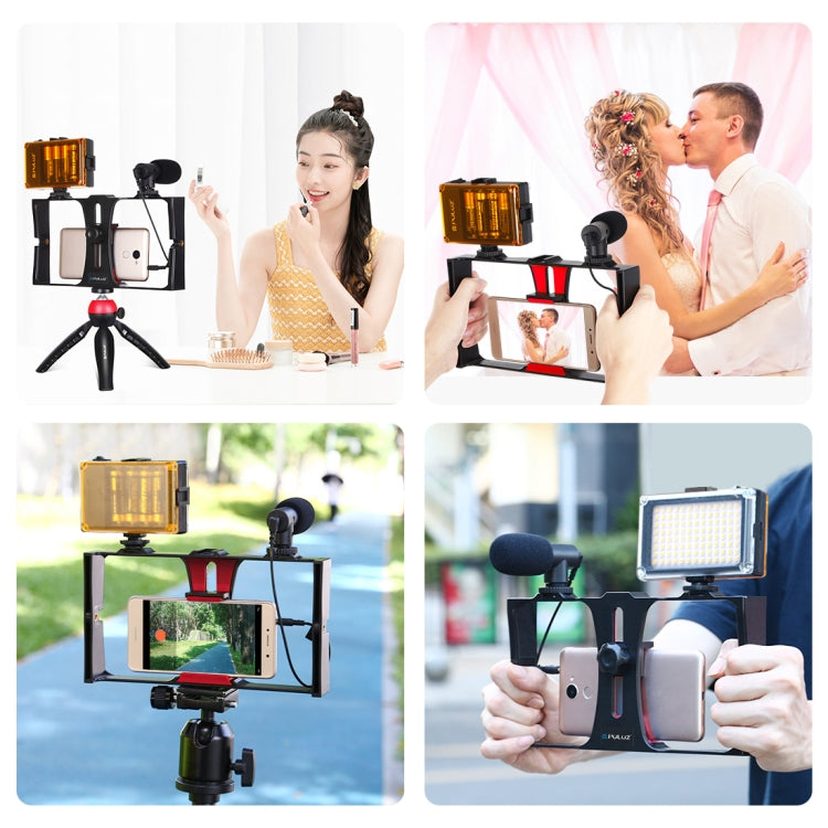PULUZ 4 in 1 Vlogging Live Broadcast LED Selfie Light Smartphone Video Rig Kit with Microphone and Tripod - Blue