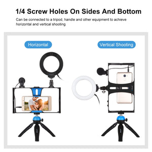 PULUZ 4 in 1 Vlogging Kit with RGBW Ring LED Selfie Light, Microphone, and Pocket Tripod Mount (Blue)