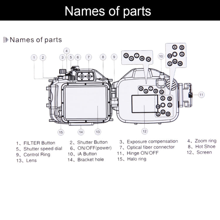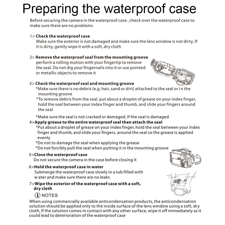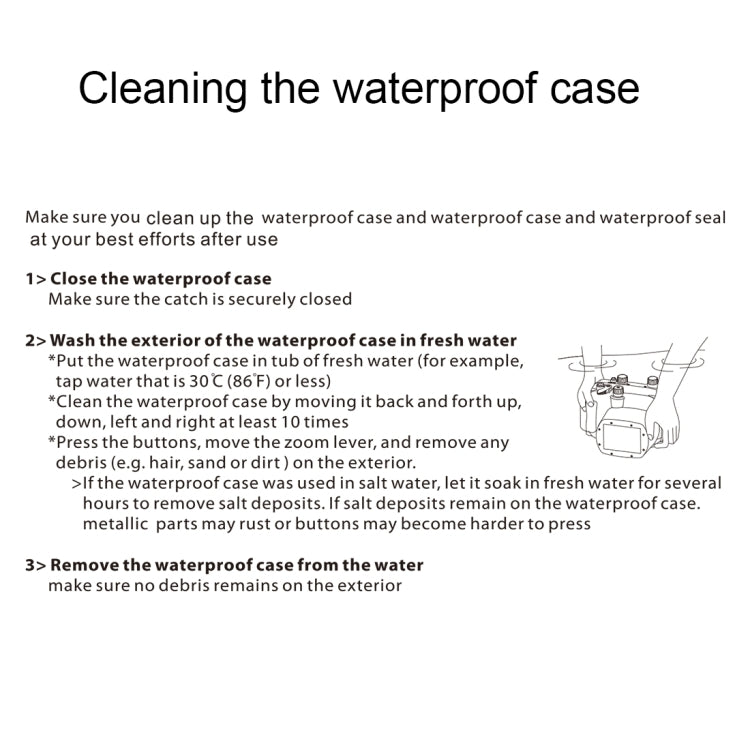 Notice: Prior to use, it is recommended to test the underwater functionality without your digital camera for the first time and confirm its leakproofness.