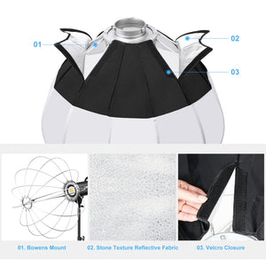 - Lightning-Fast Setup: The spherical softbox can be effortlessly popped open and ready to use within seconds, allowing for quicker light setup and adjustment.