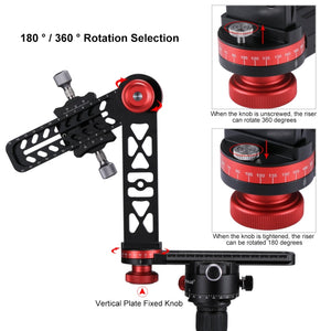 - The ball head boasts 4 angles of rotation: 15, 30, 45, and 60 degrees, enabling 360-degree panoramic shooting in both horizontal and vertical orientations.