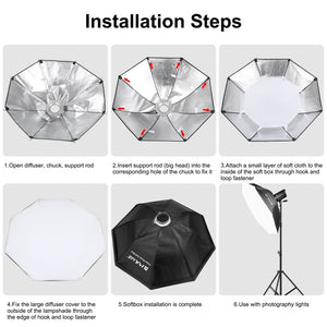 - Easy to Use: With its umbrella-style design, the softbox is simple to open and use, and folds down effortlessly for storage. It's also equipped with a convenient nylon storage bag for portability.