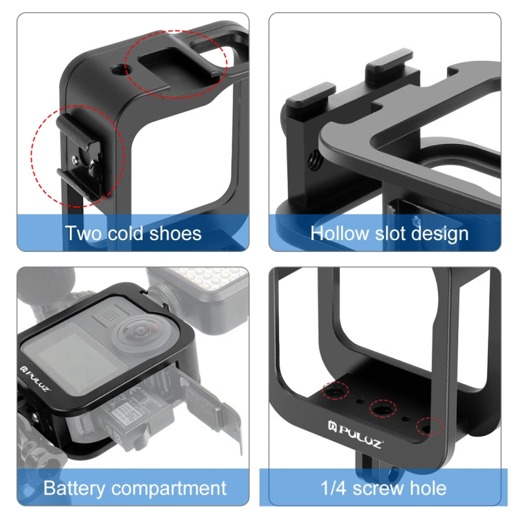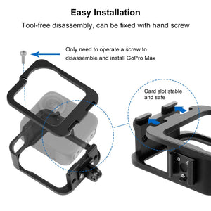 PULUZ Aluminum Alloy Protective Cage Frame with Cold Shoe for GoPro Max (Black) - Ultimate Protection for Your GoPro Max