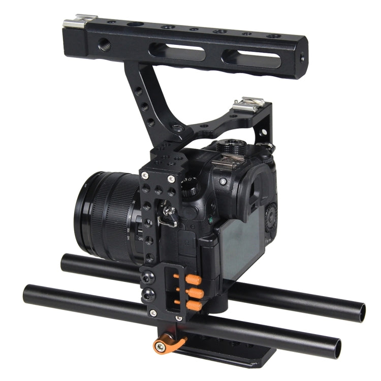PULUZ Camera Cage Handle Stabilizer for Sony A7 Series, A6000, A6500, A6300, and Panasonic Lumix DMC-GH4 (Orange)