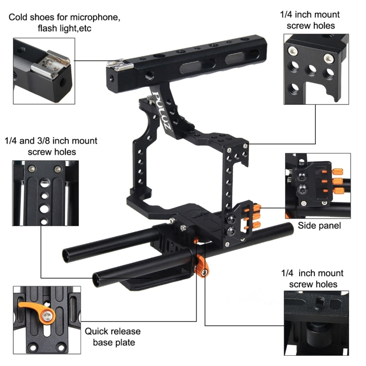 Introducing the PULUZ Camera Cage Handle Stabilizer for Sony A7 & A7S & A7R, A7 II & A7R II & A7S II, A7R III & A7S III, A7R IV, A6000, A6500, A6300, Panasonic Lumix DMC-GH4.