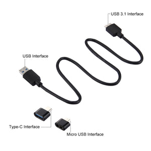 Convenient Connectivity: Included with the case is a 3 in 1 USB cable, featuring USB 3.0, micro USB 2.0, and Type-C to micro USB 3.0 connections, ensuring compatibility with a wide range of devices. The card reader function supports devices with OTG function, offering ease and versatility in transferring data.