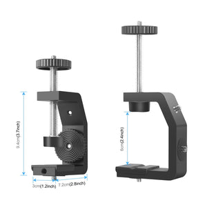 PULUZ Heavy Duty C Clamp Camera Mount for Action Cameras and DSLR - Adjustable Jaw and Rubber Padding for Stability