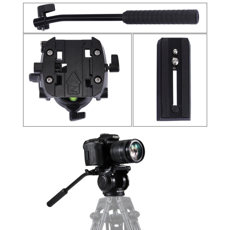 PULUZ Heavy Duty Video Camera Tripod with Fluid Drag Head and Sliding Plate for DSLR & SLR Cameras-Small Size (Black)