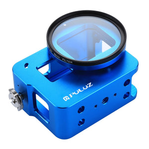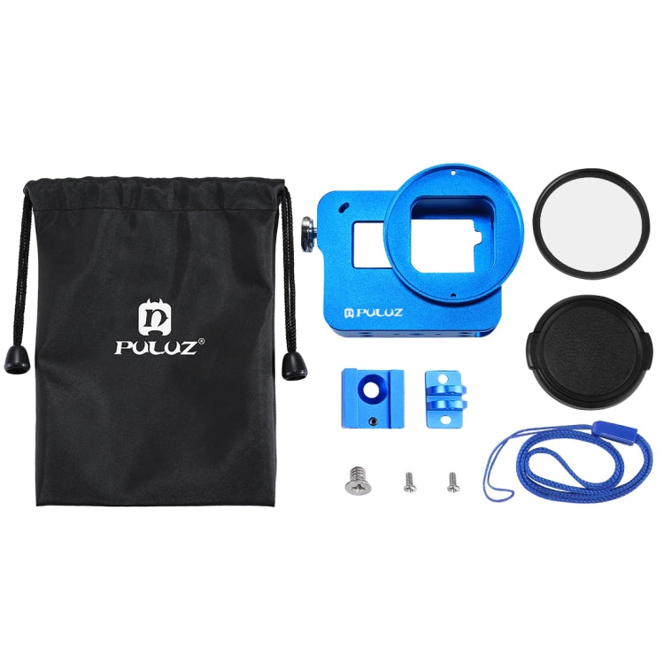 PULUZ CNC Aluminum Alloy Protective Cage with UV Lens for GoPro HERO (2018) /7/6/5 (Blue)