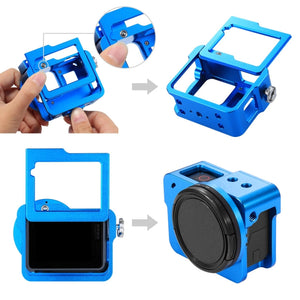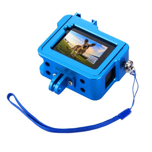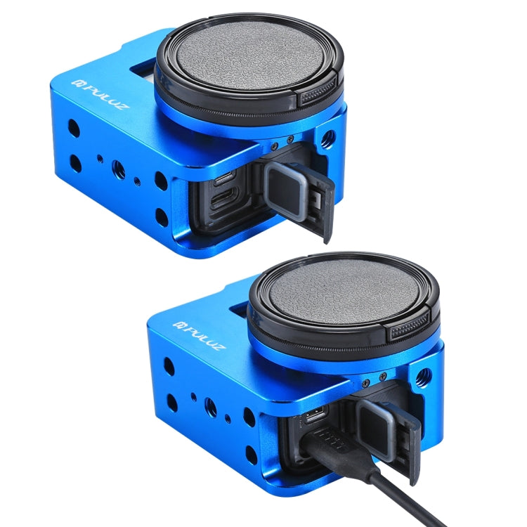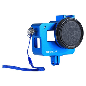 Enhance the protection and functionality of your GoPro HERO with the PULUZ Housing Shell CNC Aluminum Alloy Protective Cage in a striking blue color.