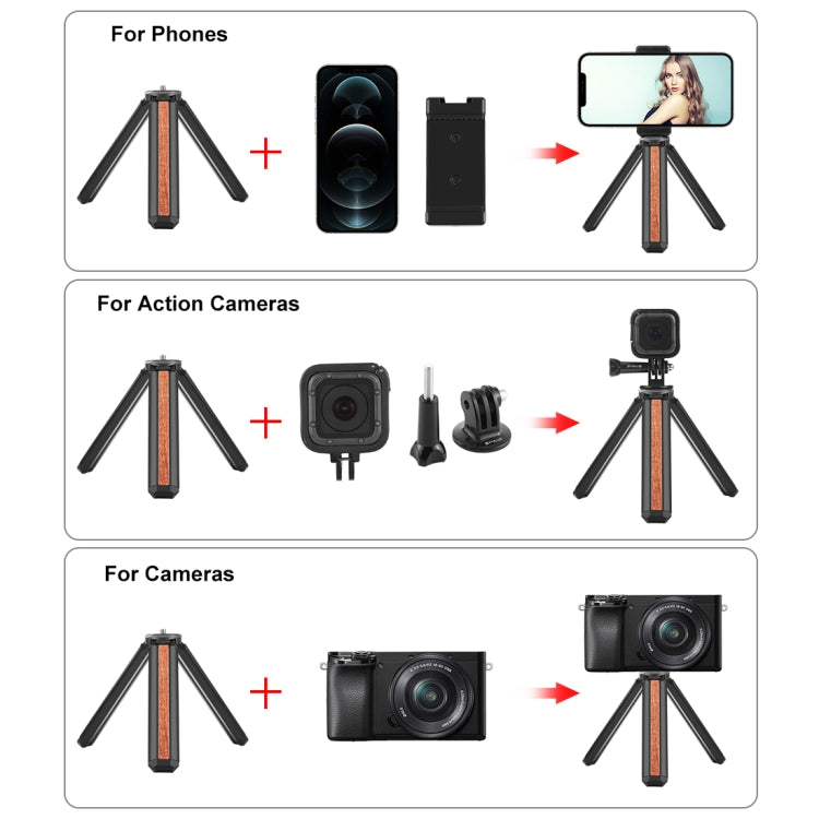 PULUZ Inlaid Wood Desktop Vlogging Live Tripod Holder (Black)