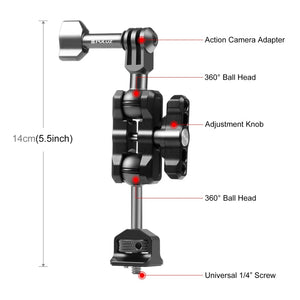 - 360-degree rotating double ball head: Capture shots from any angle with the versatile 360-degree rotating double ball head design. Effortlessly achieve simultaneous shooting of a camera and action camera with the powerful magic arm.