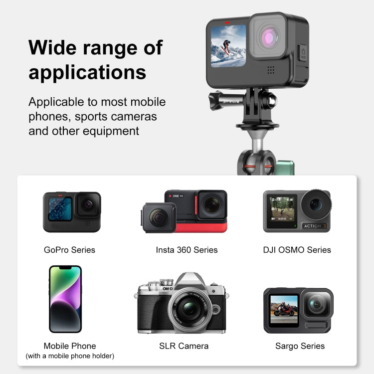 - Universal Compatibility: With strong load-bearing capacity, it can be connected to various equipment including sports cameras, mobile phones, mirrorless cameras, and camping lights.
