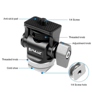 PULUZ Mini 180 Degree Swing Tripod Ball Head Cold Shoe Mount Adapter in Silver