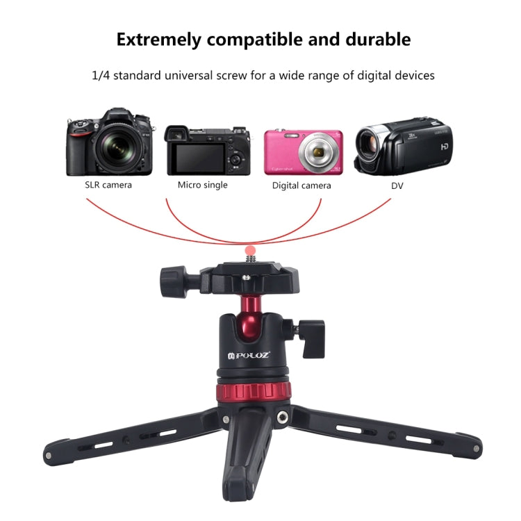 PULUZ Pocket Mini Adjustable Metal Desktop Tripod with 360 Degree Ball Head for DSLR & Digital Cameras (Red)