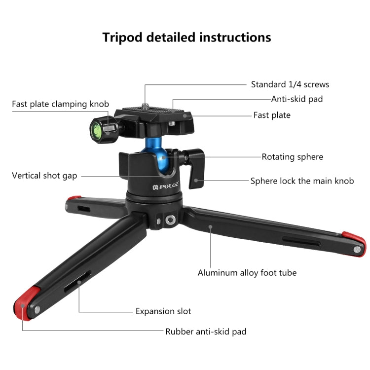 PULUZ Pocket Mini Metal Desktop Tripod with 360 Degree Ball Head