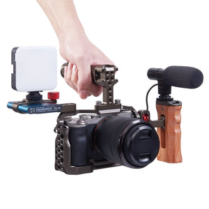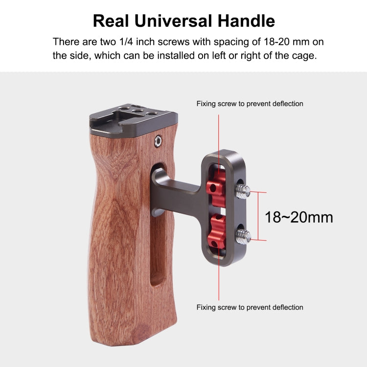 PULUZ Universal Side Wooden Handle Handgrip with Cold Shoe for DSLR Camera Cage (Bronze)