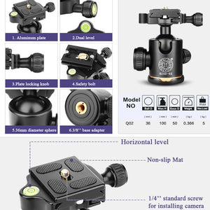 Introducing the Q222 Portable 4-Section Folding Legs Aluminum Alloy Tripod Mount Monopod Holder with Ball Heads - your ultimate companion for capturing stunning photographs and videos. Crafted with high-quality aluminum alloy and ABS, this tripod is designed to provide stability and durability for your photography needs.