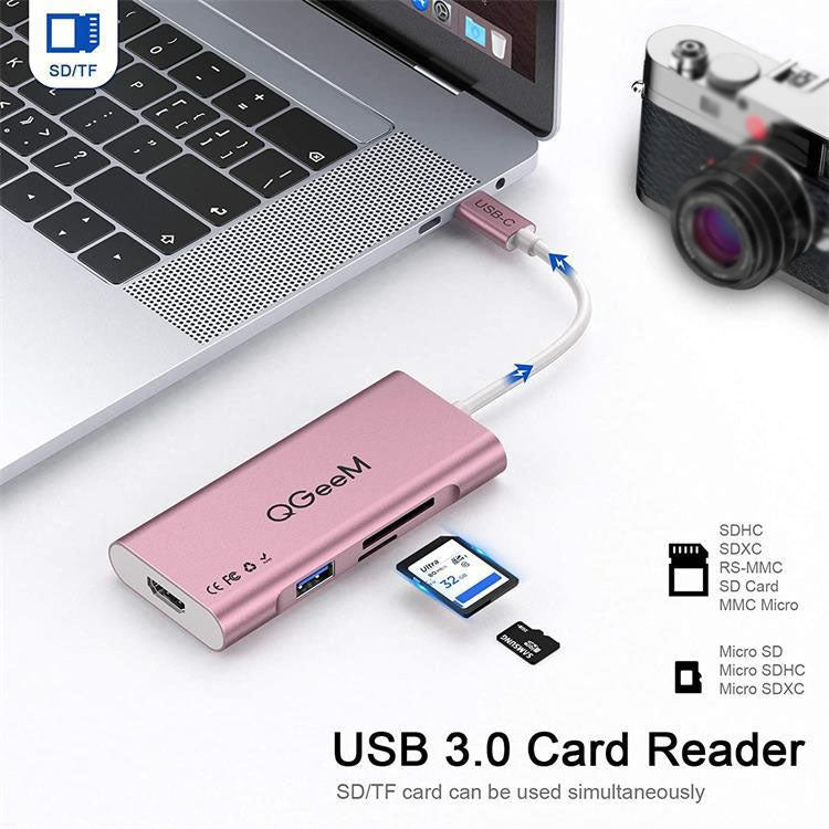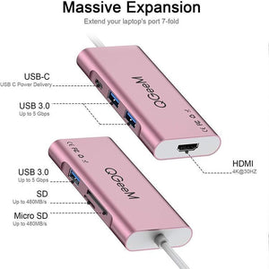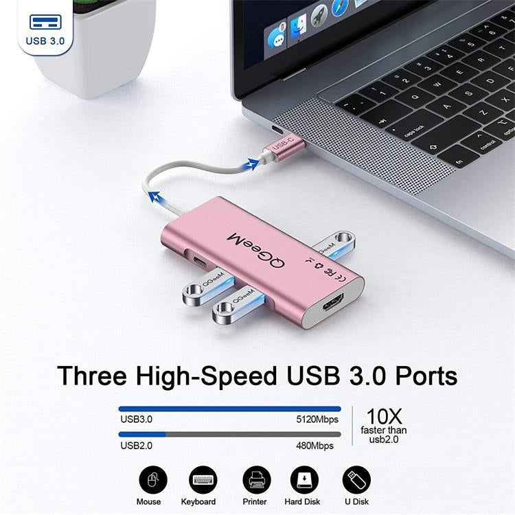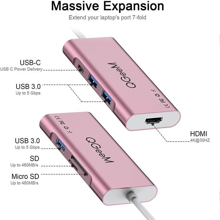 QGeeM 7 In 1 Type-C Extension HUB Adapter with HDMI, 4K, and PD Support