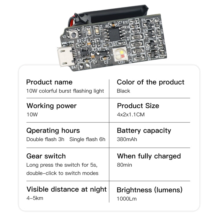 - Long Battery Life: The built-in 380mAh battery offers extended working time, with a double flash lasting about 3 hours and a single flash lasting about 6 hours.