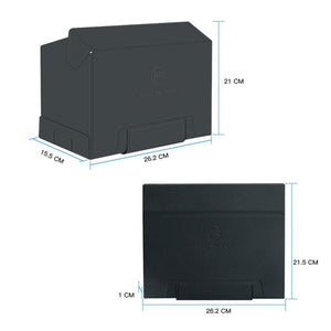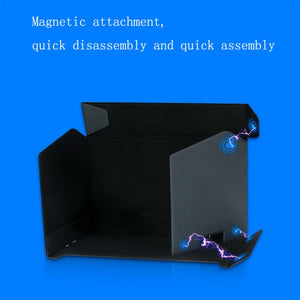 Experience the convenience and functionality of the RCSTQ Adjustable Magnetic Tablet Hood, weighing just 275.8g and sized at 26.2x15.5x21cm when unfolded, and 26.2x21.5x1cm when folded.