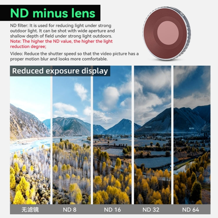 - ND-PL lens: Composite filter combining ND and PL, allowing adjustment to meet exposure and reflection elimination needs.