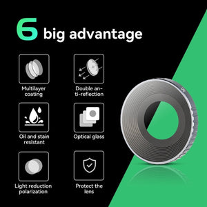- Aluminum Alloy Construction: The highly transparent and uniform multi-layer coated aluminum alloy filter ensures clearer images.