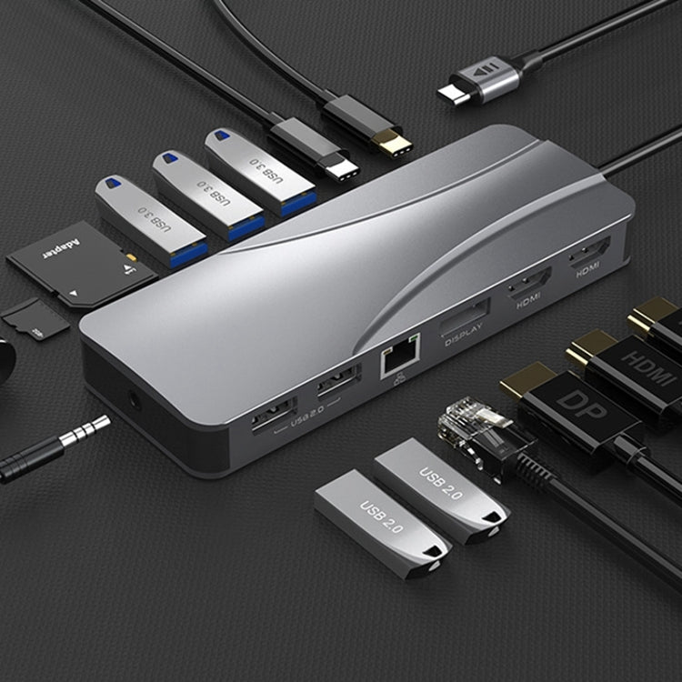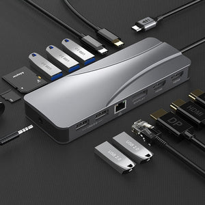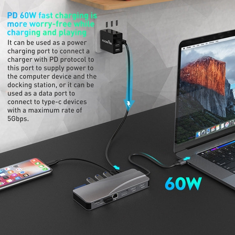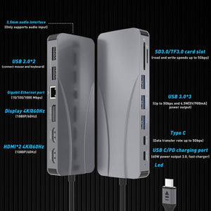 Rocketek HC451 Type-C 14-in-1 HUB Adapter with 60W PD, 4K HDMI, DP, and 100M RJ45